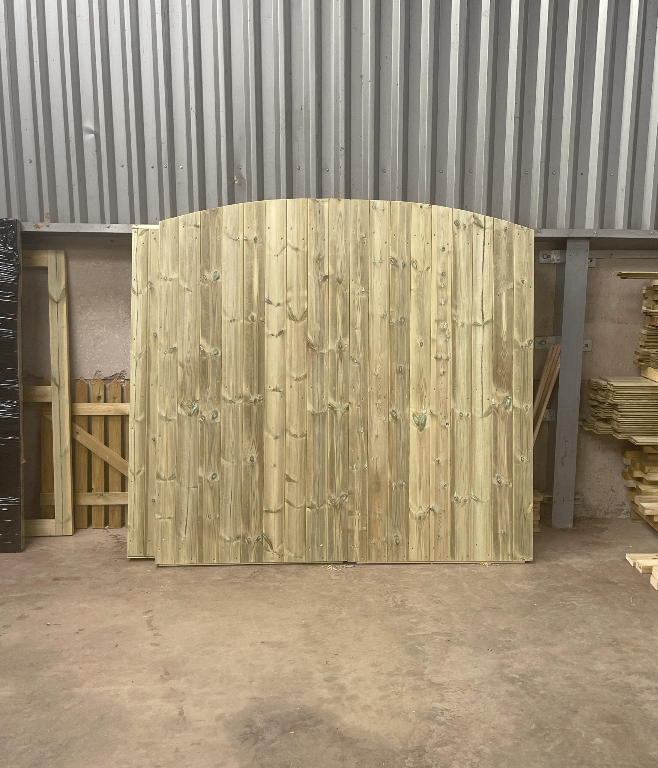 Our arched wooden driveway gates are designed to bring both strength and style to your outdoor space. Handcrafted from pressure treated redwood timber, these gates are built to stand the test of time. The smooth face finish and elegant arched top make them a beautiful feature, while the ledged and braced frame ensures lasting stability and security.